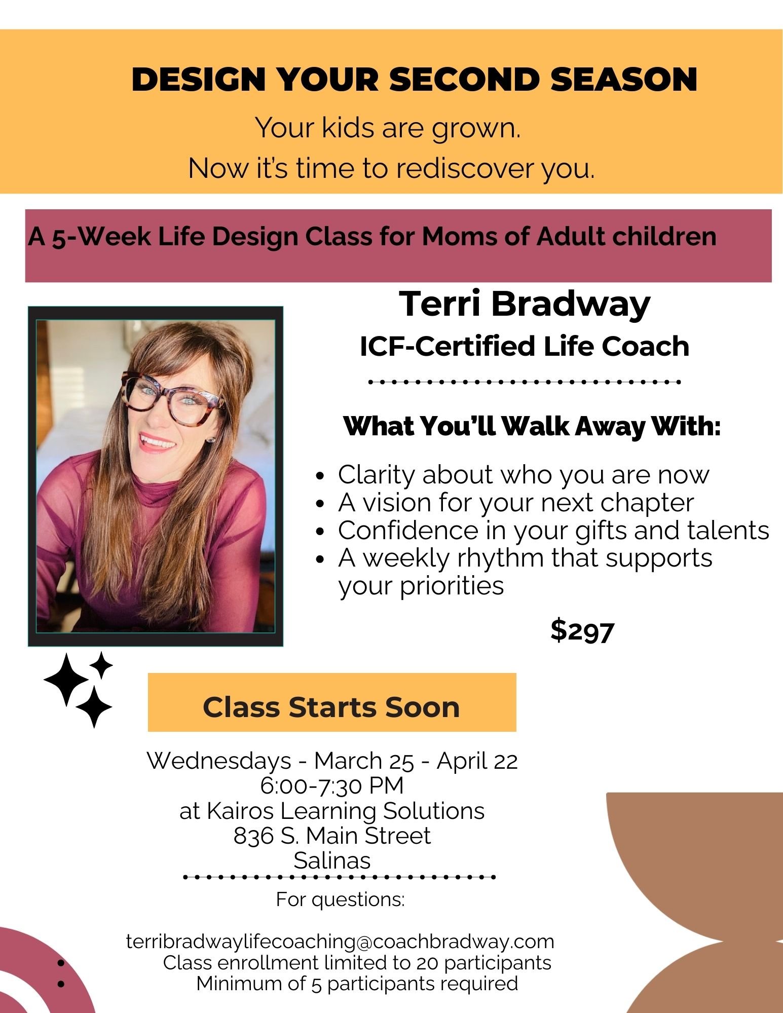 a 5-week Life Design Class for Moms of Adult Children